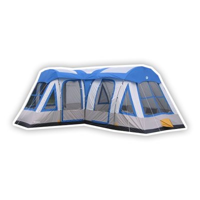 Great for comfortably sleeping from 10 to 12, the Gateway is ideal for a night with the family or your longer excursion. Separate areas provide plenty of space to stretch out throughout the day. Equipped with easy setup poles, stakes, guy ropes, and complete with large zip windows and rain fly for unexpected weather, this tent is your Gateway to the next vacation or camping adventure.