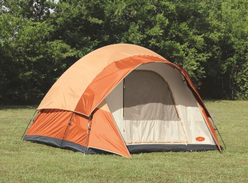 - Mecca Orange, Gray and Sand Tan color tent has a heavy-duty taffeta wall; rainfly cover and rip-stop floor are coated in Polyurethane